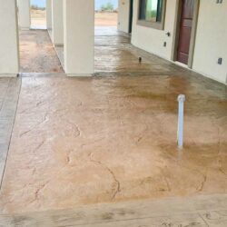 The transformation of concrete into decorative concrete is achieved through the use of a variety of materials that may be applied during the pouring process or after the concrete is cured. One of the most popular concrete design options is known as stamping. Stamped concrete is concrete that has been patterned or textured to resemble a natural stone or various other patterns/textures.